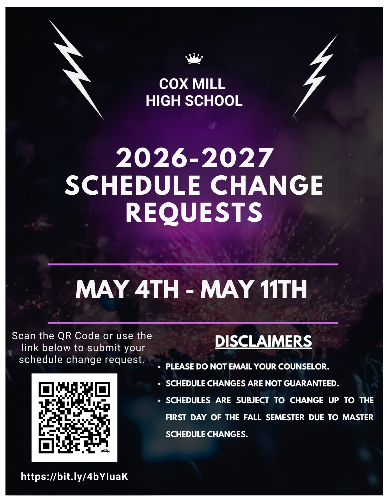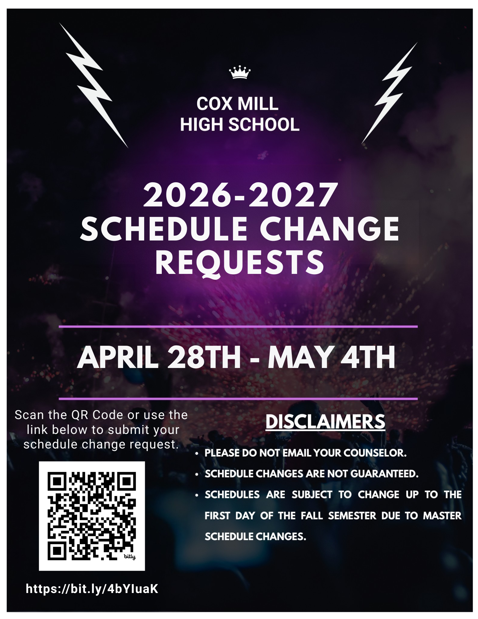 CMHS Students & Families,Due to a delay schedules for the 26-27 school year will now be distributed on Tuesday, April 28th. The schedule change window will be open from April 28th – May 4th.To ...
