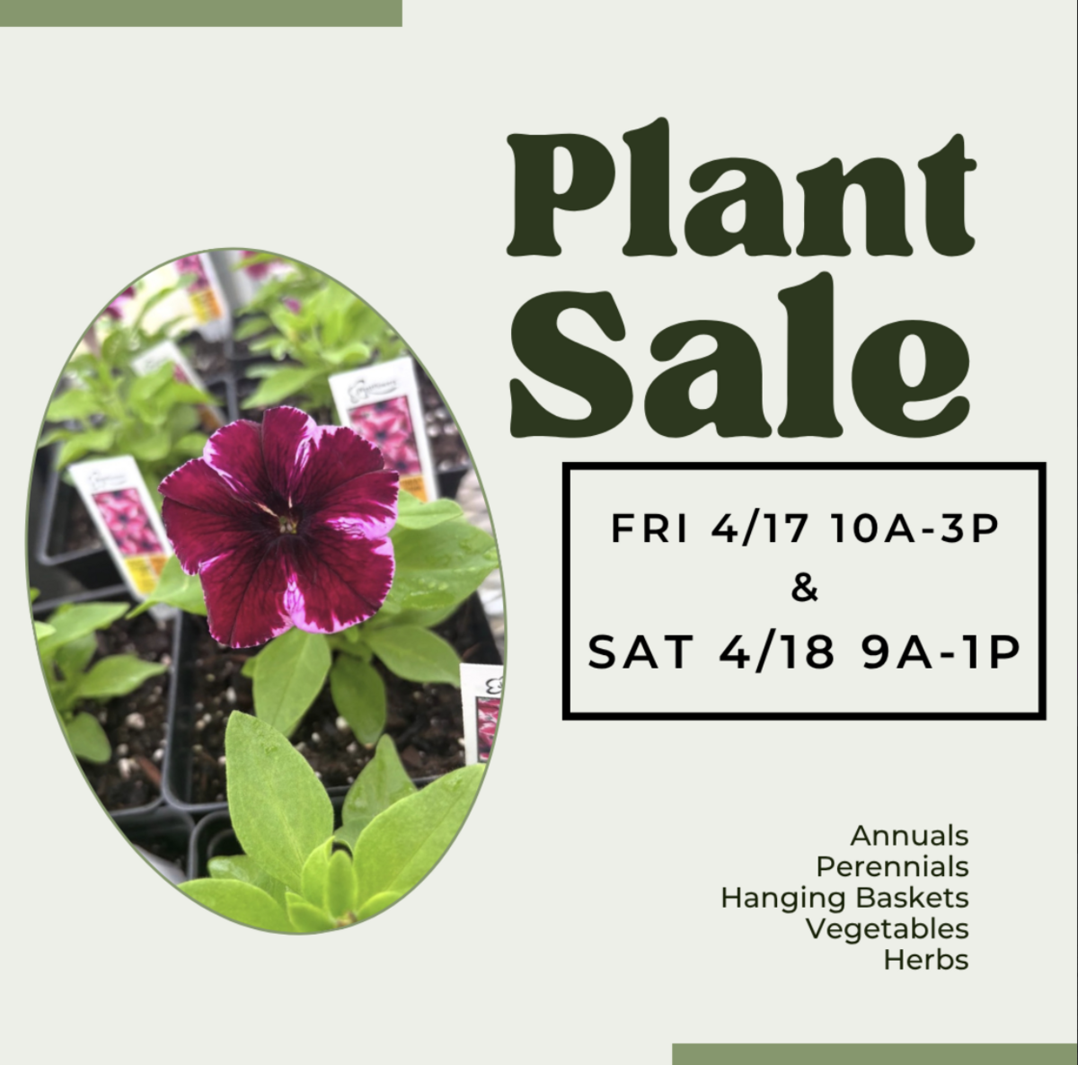 CMHS Plant Sale! 4/17 10AM-3PM and 4/18 9AM-1PMAnnuals, Perennials, Hanging Baskets, Vegetables, and HerbsAngeloniaAngel Wing BegoniaCelosiaColeusDusty MillerLantanaMarigoldMillion BellsPetuniaSwee...